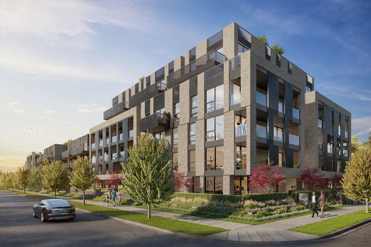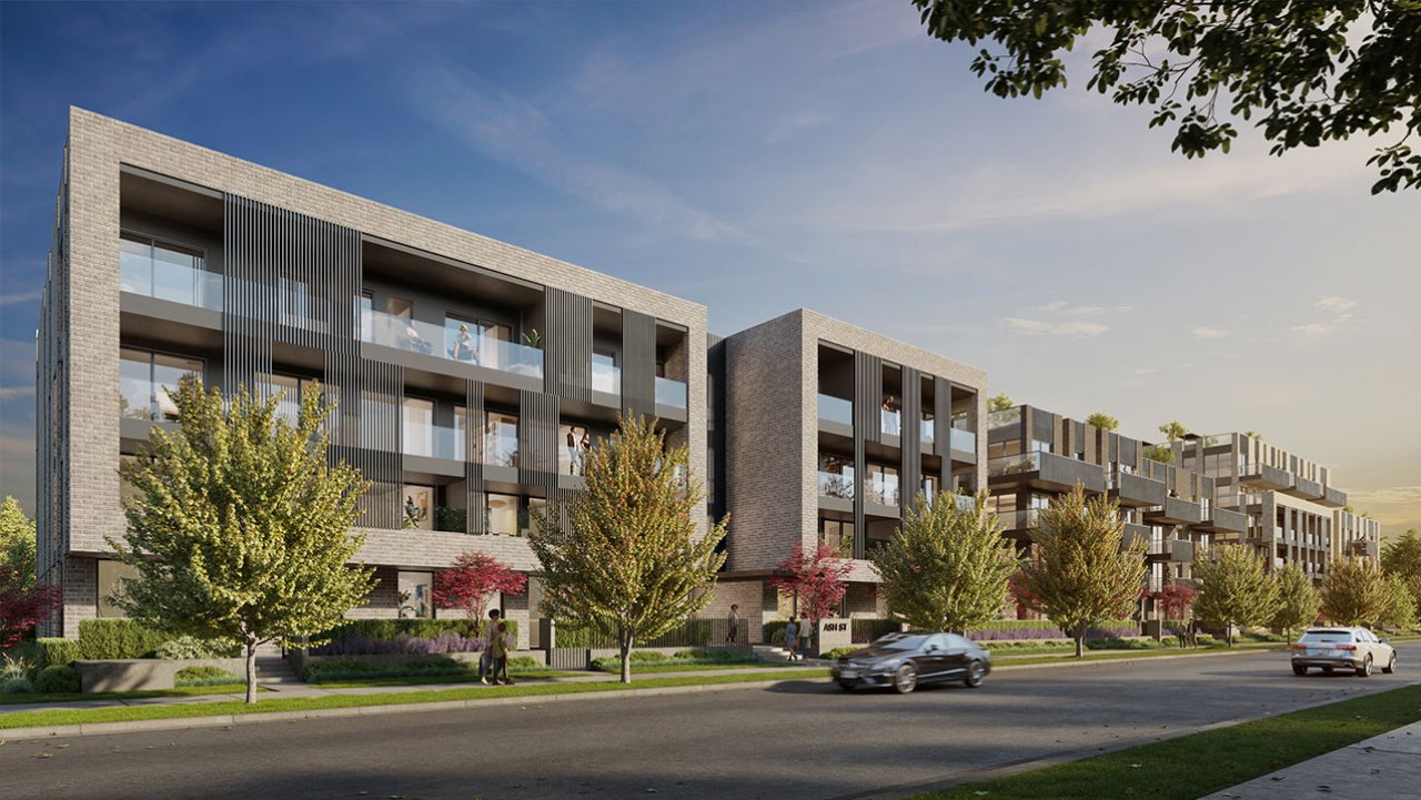 The three-building Ashleigh project replaces eight (8) single-family homes with over 133 residential homes in the Cambie Corridor. As part of this development, over 35' of the south end of the site will be dedicated to the City of Vancouver to extend West 35th Avenue from Cambie Street westward. The project consists of three (3) small-footprint buildings, with the north and central buildings set at four storeys, while the south is at six storeys. All three buildings are related, with similar materials and massing; however, the facade, rhythm and balconies are utilized to help individualize each building. The frontage along Ash Street is repeated on the lane - essentially removing the notion of a 'front and back'.