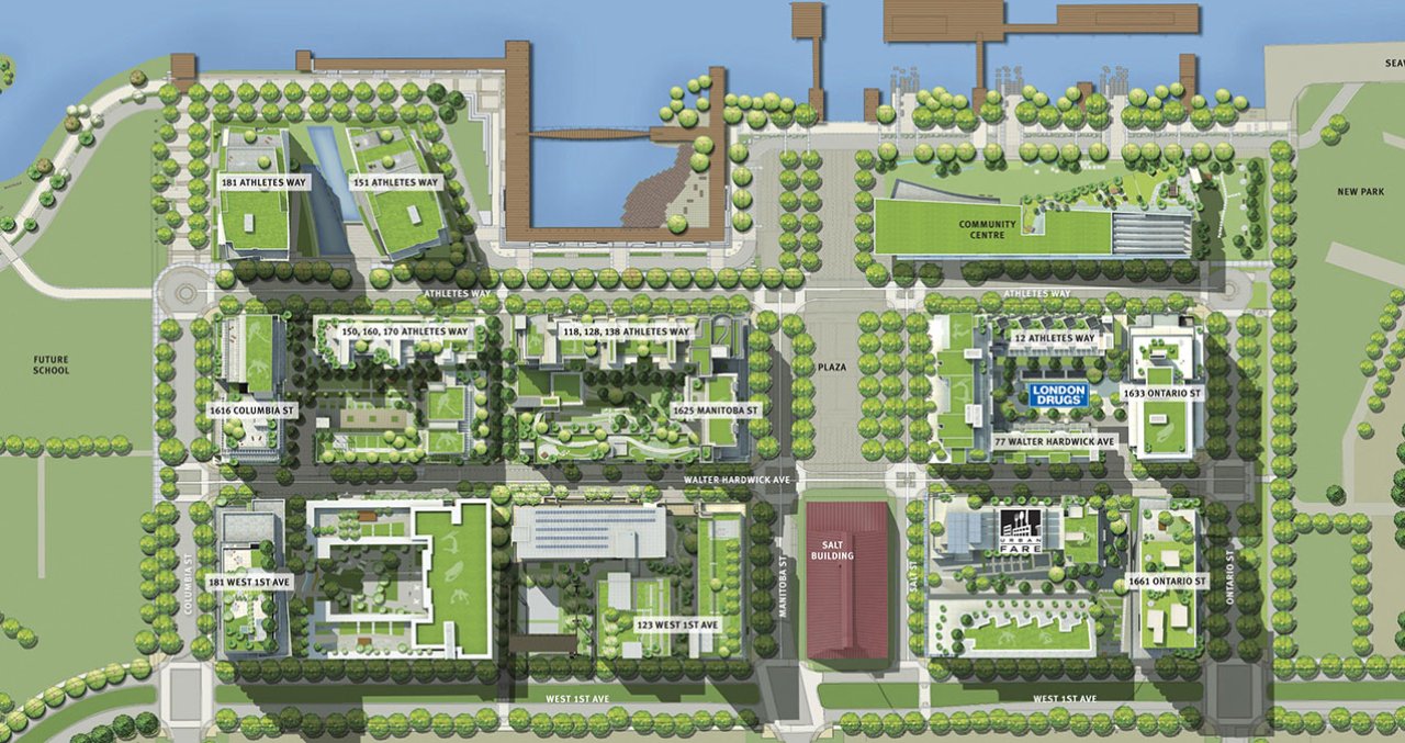 The Vancouver Olympic Village development has transformed seven hectares of urban industrial land into a vibrant sustainable community. The project comprises residential, commercial, heritage restoration, community facilities, outdoor naturalised areas and public space including two parks, a central plaza, a habitat restoration ‘island’ and a recreational waterfront promenade. The Olympic Village site is part of South East False Creek, the last remaining large-scale waterfront property adjacent to Vancouver’s downtown peninsula. From its historic role as a centre of heavy industry, the lands are being rejuvenated under the guidance of two decades of city authority as a model neighbourhood founded on the four pillars of sustainable community building – acknowledging social, economic and cultural values alongside a deep respect for the environment. 1.4 million square feet of built space was all undertaken in the context of a rejuvenated urban framework and a new utility infrastructure. The Vancouver Olympic Village is a test-bed for the implementation of sustainability driven planning and design practices that are unprecedented in the local industry. As a result of this project there is a renewed conviction that livability, manifested as social, environmental and economic sustainability, is fundamental to successful community building.