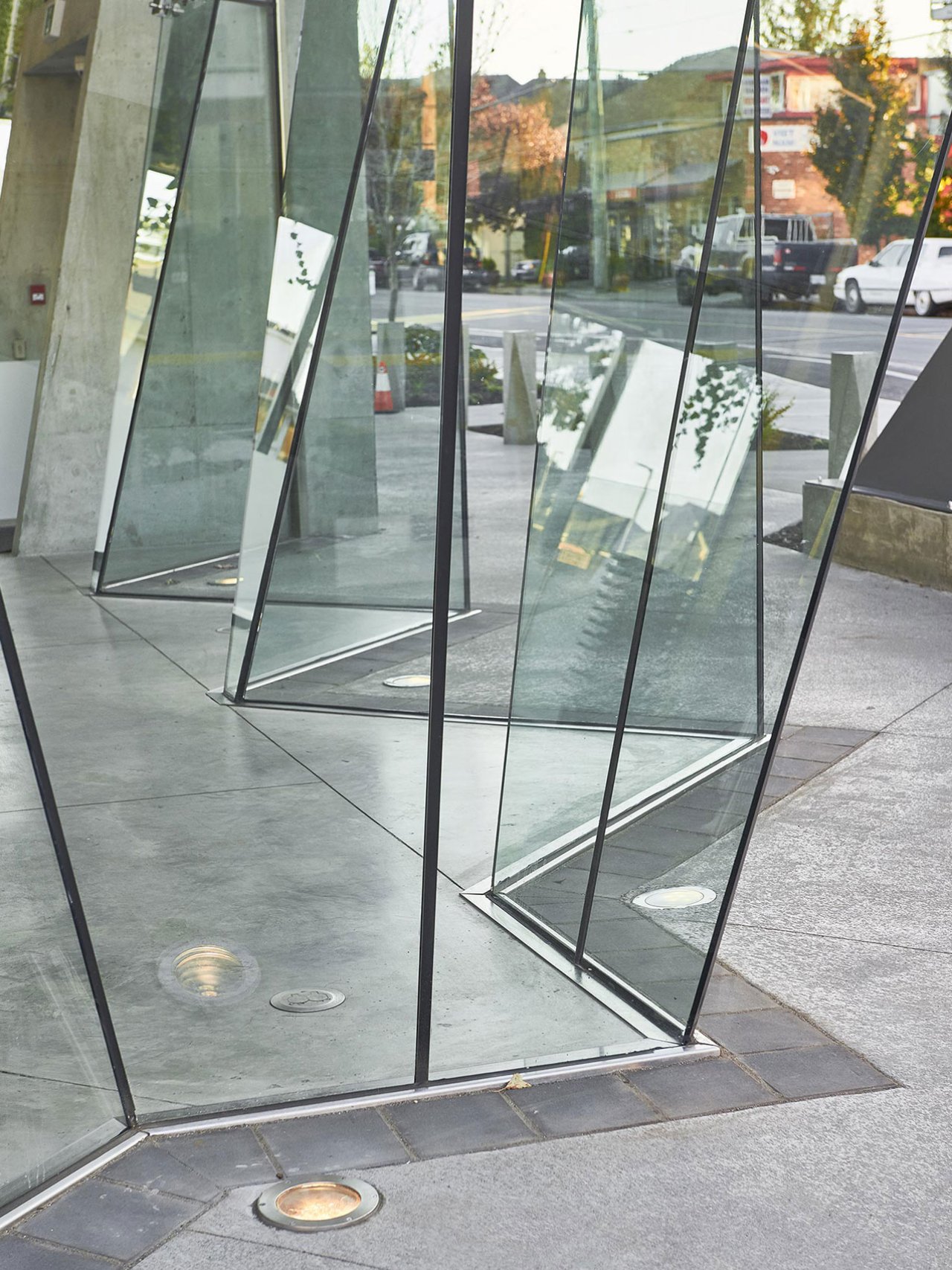 Liquor stores are ubiquitous in their urban presence, often muted in their expression, and relentlessly generic in their architectural design. Function dictates form, resulting in characterless boxes that contribute little to the eclectic vitality of high street commercial frontages. Our client encouraged us to challenge the pre-conceived ideas of this retail design typology, to develop a unique building form that would function independently as a successful retail space in a neighbourhood that has been devoid of significant commercial growth in recent years. The concept for the building massing is a simple one; two interlocking volumes each representative of their internal functions - an elongated glass box for the main retail space, and a faceted opaque block that houses the storage area and service rooms. The orientation of each component is in careful consideration to the immediate context - the glazed frontages facing the two adjacent street edges to maximise retail exposure, and the concrete massing abutting the rear parking and loading areas. The ground level open plan allows for approximately 4,500sf of retail space, complemented by a smaller private mezzanine area for the purpose of private tasting events, industry workshops, and neighbourhood cultural gatherings.